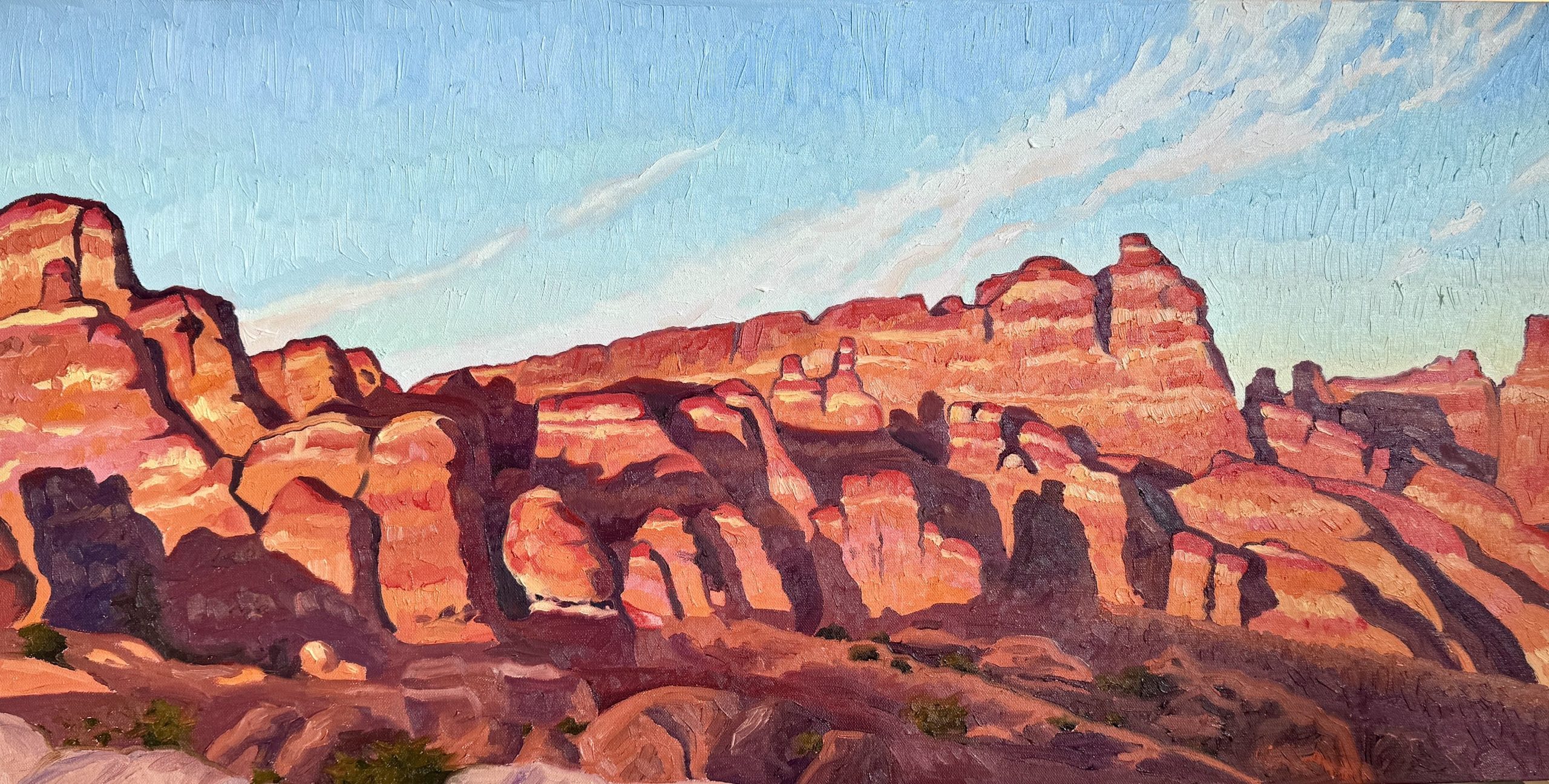 Superior Glow – 30×40 – Oil on canvas – Sold Two Medicine – 18×24 – Oil on canvas The Lone Saguaro – 8×10 – Oil on board – Sold Blue Boots – 24×30 – Oil on canvas Big Cottonwood Creek – 14×18 – Oil on canvas- Sold Castle Valley – 20×24 – Oil on canvas – Sold Paintbrush – 10×10 – Oil on board – Sold Dreamland – 20×20 – Oil on canvas – Sold Castle Blues – 20×24 – Oil on canvas Sunrise on the Castle – 9×12 – Oil on canvas – Sold Fiery Furnace – 18×36 – Oil on canvas – Sold Wasatch in Gold – 15x30in – Oil on canvas – Sold Dawn Sentinel – 24×36 – Oil on canvas – Sold Corona Arch – 11×14 – Oil on Linen Supreme Day – 36×36 – oil on canvas